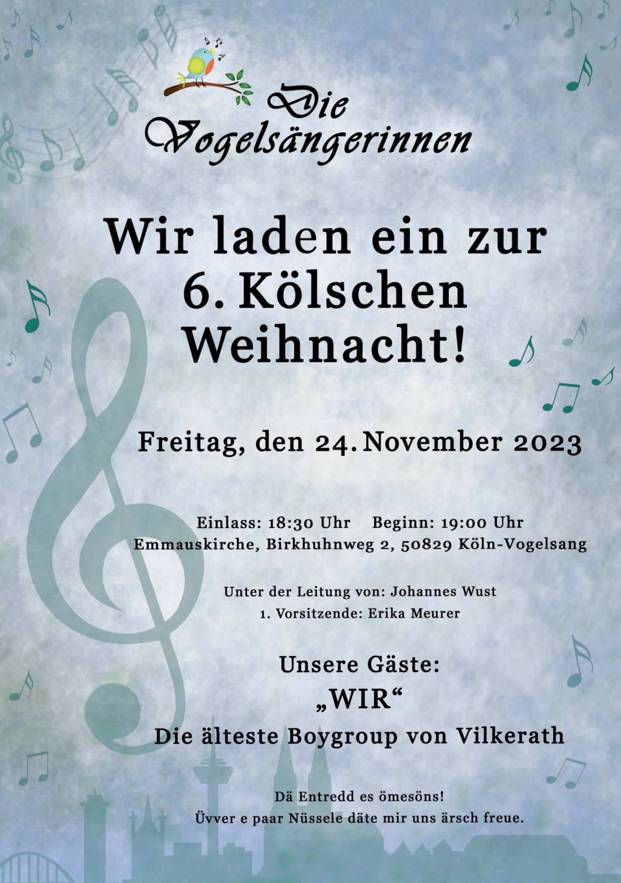 Die Vogelsängerinnen laden ein zur 6. Kölschen Weihnacht und WIR ist mit dabei!